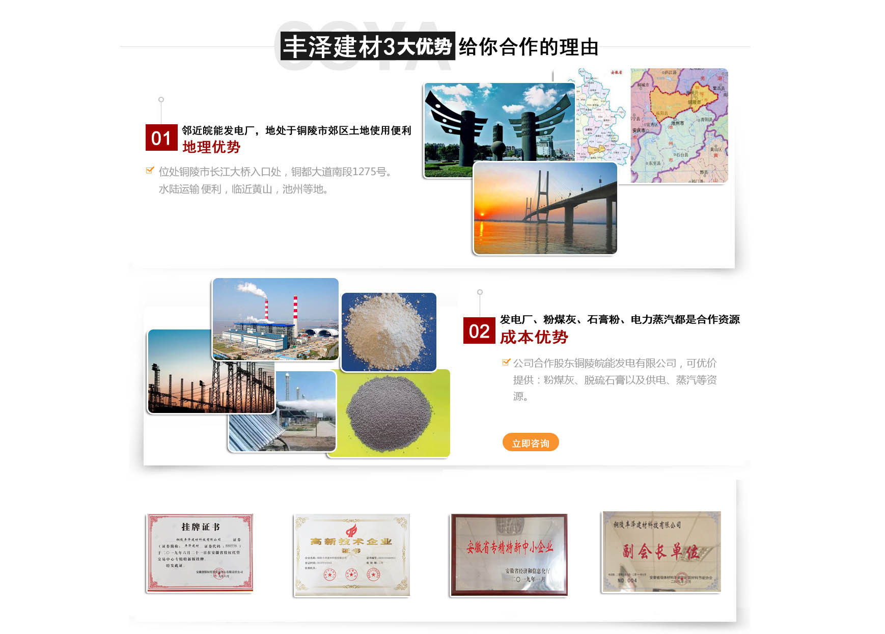 銅陵豐澤建材科技有限公司成立于2007年2月,坐落于銅都大道南段,占地4萬平方米,公司注冊資金1000萬元,現(xiàn)有職工百余人,是一家與皖能發(fā)電公司合作,專業(yè)從事電廠粉煤灰開發(fā)利用的高新科技企業(yè),現(xiàn)擁有一條年產(chǎn)30萬立方米蒸壓加氣混凝土全自動生產(chǎn)線。 蒸壓加氣混領(lǐng)土(英文名Autoclaved aerated comcrete),也稱AAC,是以砂、粉煤灰等硅質(zhì)材料和石灰、水泥等鈣質(zhì)材料為主要原料,摻加鋁粉為發(fā)氣劑,進行生產(chǎn)的新型墻體材料。是我國推廣應(yīng)用最早,使用最廣泛,技術(shù)最完整的輕質(zhì)保溫墻體材料之一,自問世以來,始終方興未艾,備受推崇。